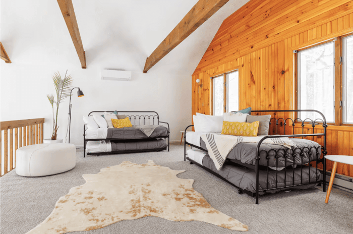Vanesa makes great use of this cozy versatile loft space with the addition of two twin trundled daybeds in her immaculate chalet located in Lake Harmony, Pennsylvania.