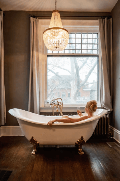 Host Christopher features photos throughout his listing that highlight the versatility and relaxing elements of his beautiful brick Victorian Airbnb property in Columbus, Ohio.