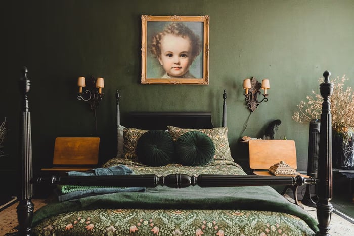 The Blue Veil Manor, a historic Victorian era estate and funeral home turned Airbnb in Dresden, Canada and hosted by Heather, uses original blueprints of the property as well as Victorian portraits to adorn their walls and create a spine tingling and jaw dropping esthetic