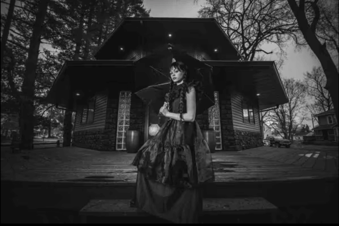 Wednesday Lair in Lincoln Illinois and hosted by Elizabeth goes fullbore with an entire home inspired by Netflix’s Wednesday series.